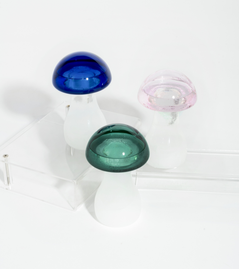 A mushroom-shaped storm glass barometer is an elegant and unique object. The crystals inside react to changes in the weather, creating a fascinating display of delicate formations to predict rain or shine. Ideal for home or office decoration, it combines weather-related functionality with natural aesthetics.